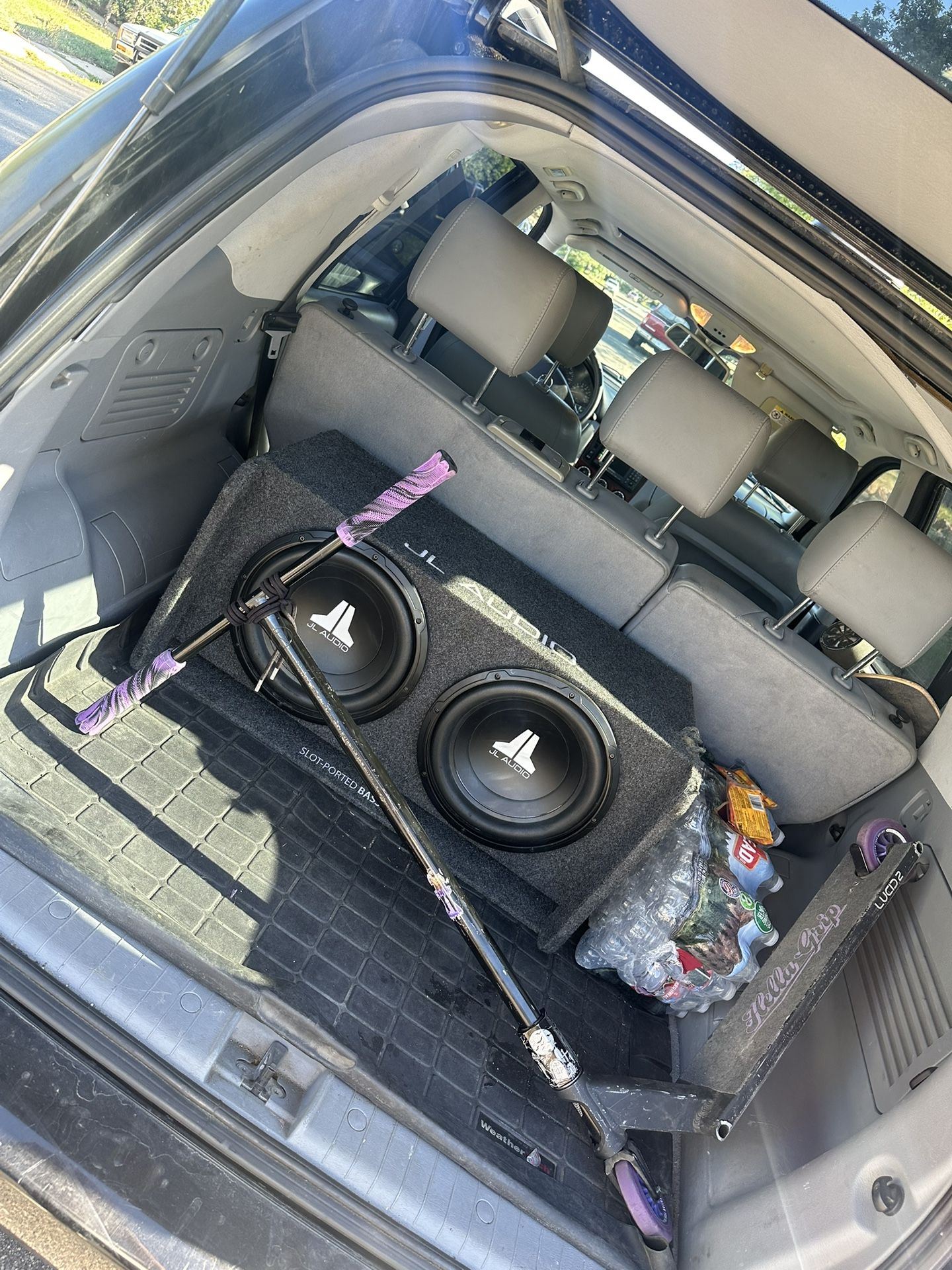 Great subs, don’t need them anymore, one corner of the enclosure is a little ripped. No wires, no amp.