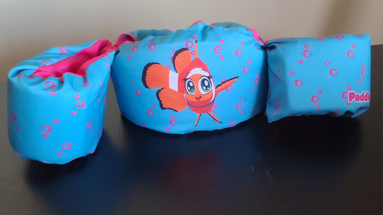 Like new, only used twice. Perfect for the lake or pool! Comfortable fit, with adjustable strap. Weight: 33-55 lbs