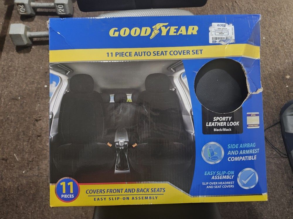 11 piece Auto Seat Covers with leather look black. $45 value. New. $30