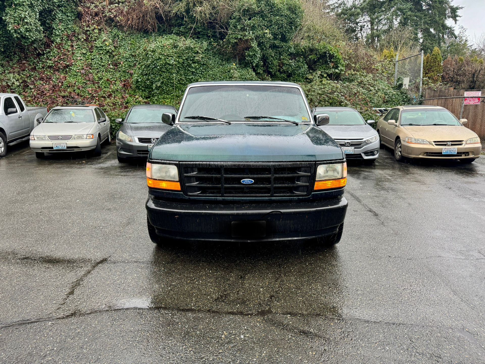 In good condition and runs well—a great project car. '94 Ford with an inline-6 engine.