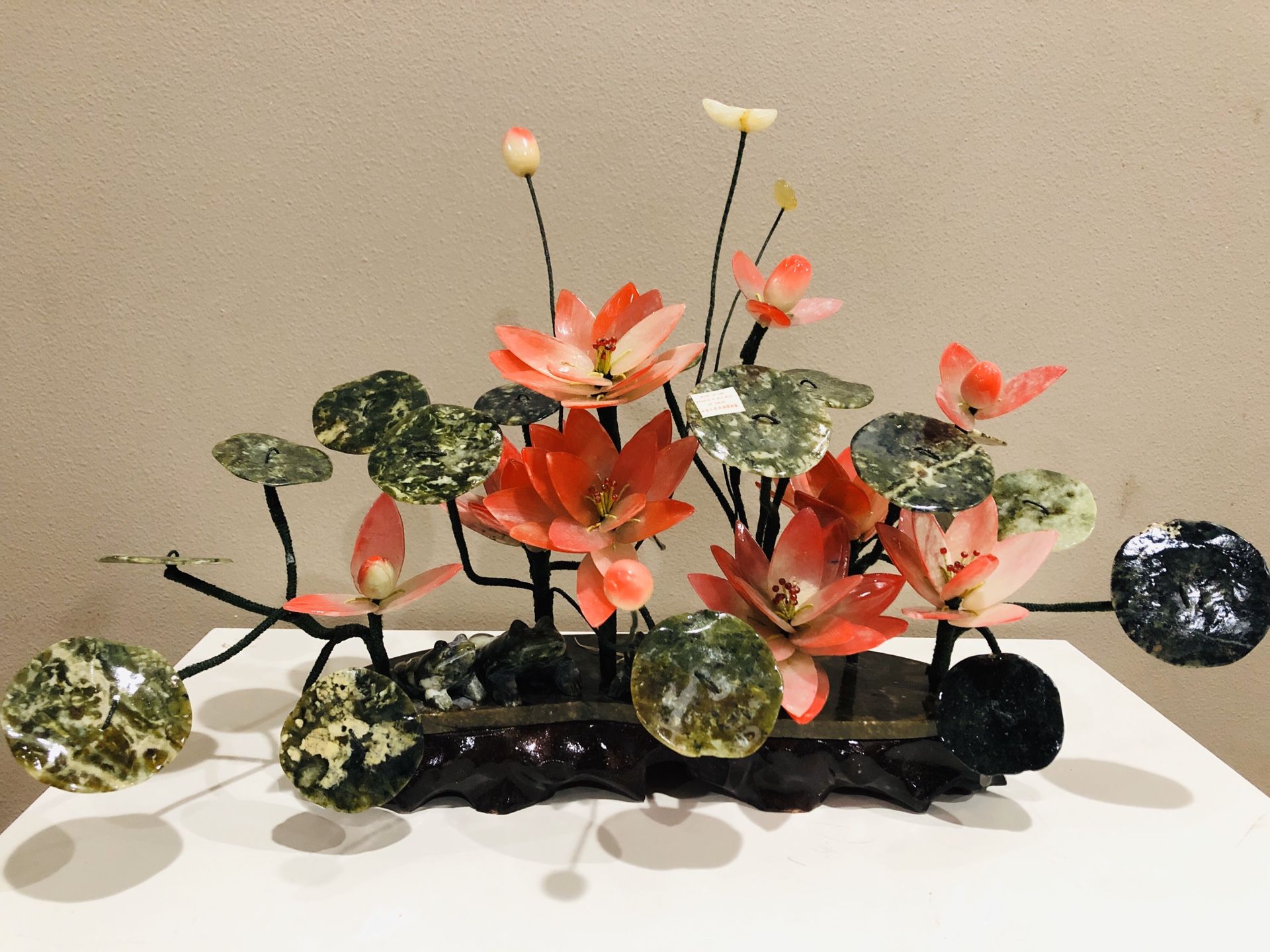 Gorgeous Hand-Crafted Jade and Glass Lotus Plant Art