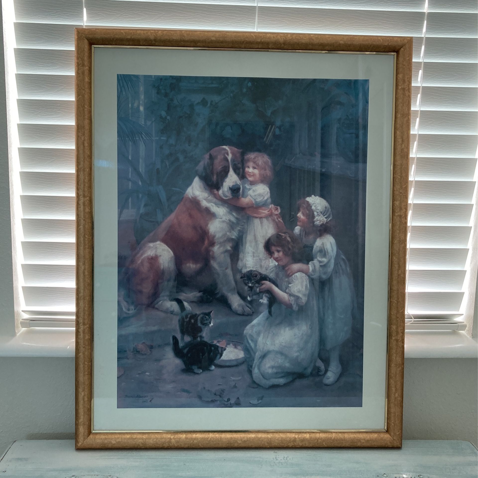 A simple heartwarming print of sisters appreciating and loving their family and pets.