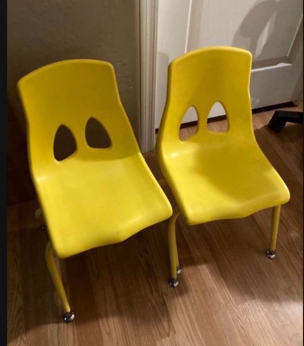 Stackable kids yellow desk chairs. Vintage style. Very sturdy and durable. Located in Goodyear