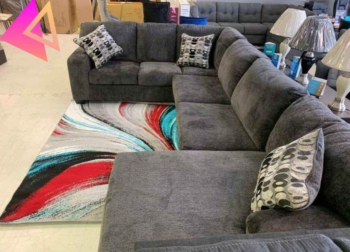 Ballinasloe 3 Piece U Shape Deep Seating Large Comfy Oversized Sectional Couch With Chaise | Dark Gray Sofa Set | Brand New Living Room Set