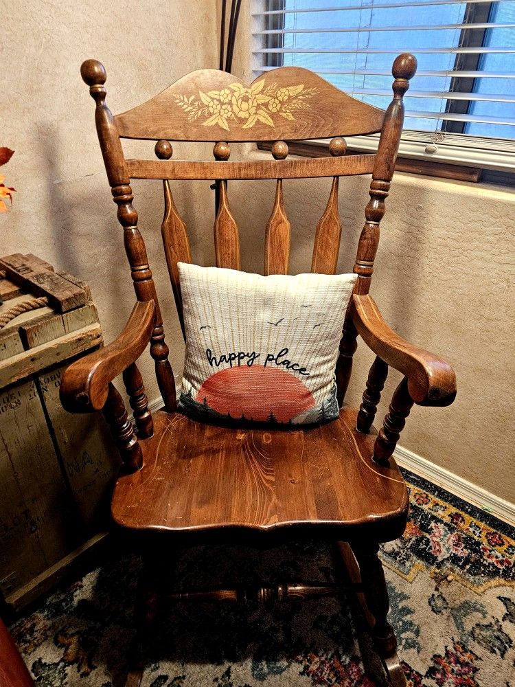 Heavy, solid wood construction. Comfortable and rocks smoothly. Available to the first person who can pick up and pay $80 cash.