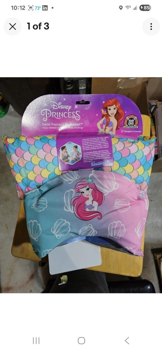 The Swimways Ariel Disney Princess Swim Trainer Life Jacket is a stylish and functional flotation device designed for children weighing between 33-55lbs. Made by the brand Swimways in the United States, this life jacket features a charming Disney Princess Ariel design, making it appealing to young swimmers. With its durable construction and reliable support, this life jacket provides safety and comfort during water activities, allowing children to enjoy the water while staying secure.
