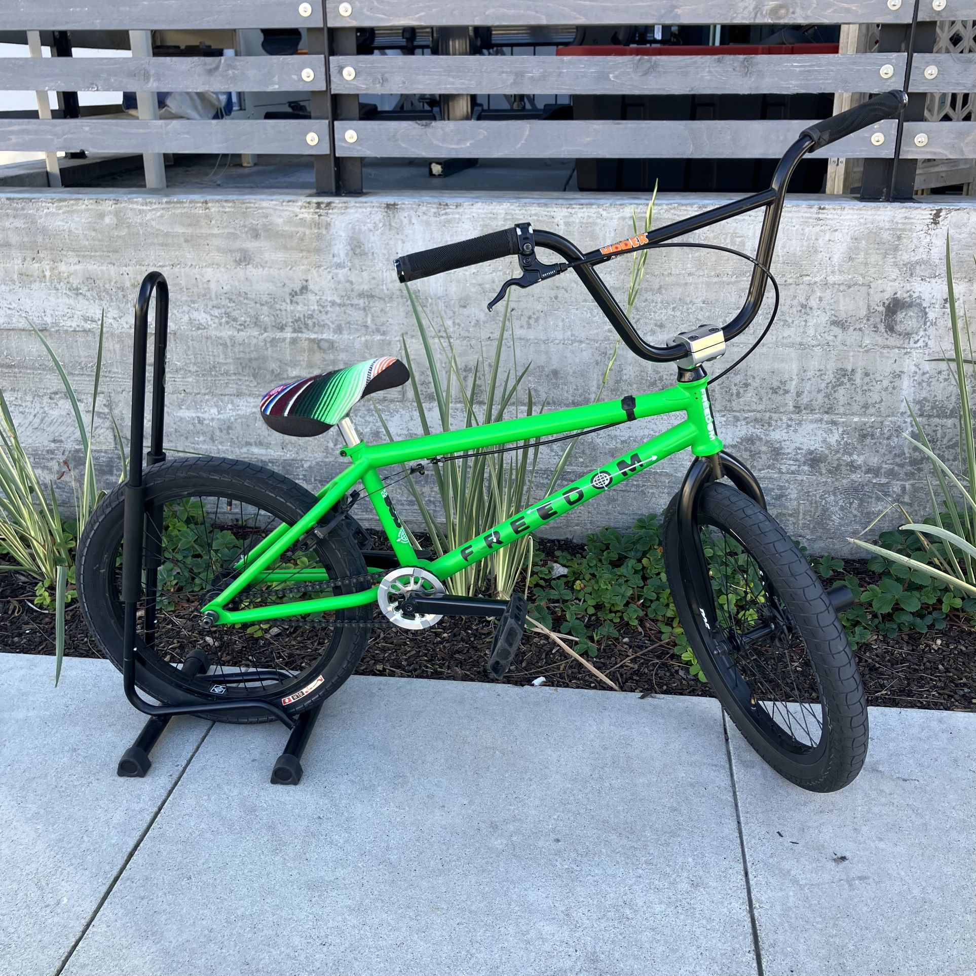 Selling a few of my custom built bmx bikes. This one is a BSD Kriss Kyle Freedom frame. The frame has a 20.7 top tube. It was built with all quality pars like odyssey forks, bottom bracket, headset, stem, brakes and seat. Also has S&M Hoder handlebars, Animal GLH tires fitbikeco wheels and pedals a chrome colony 25 tooth sprocket and a cult halflink chain. I believe the hub guards at odesssy and federal.. and the pegs are animal Benny’s. Bike built was easily 1,300-1,500 bucks but it’s not getting used this summer due to an injury I sustained at work. My loss your gain. Asking 580 or best offer.