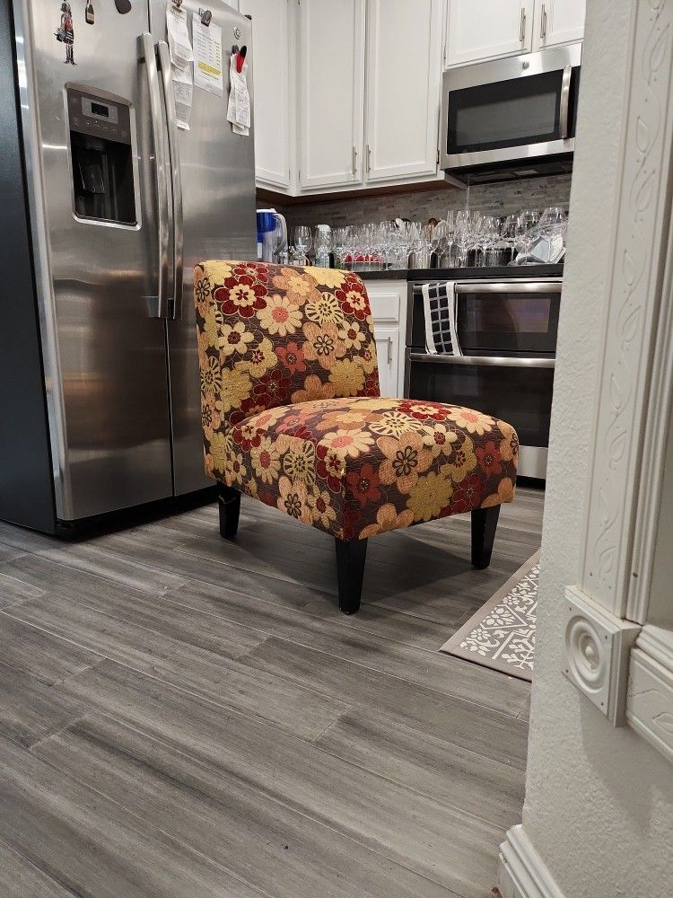 2 lightly used Parsons Chairs original price $200 each price tag still visible. Dimensions 24" wide 29"deep 34" Tall. $70 total for both chair.