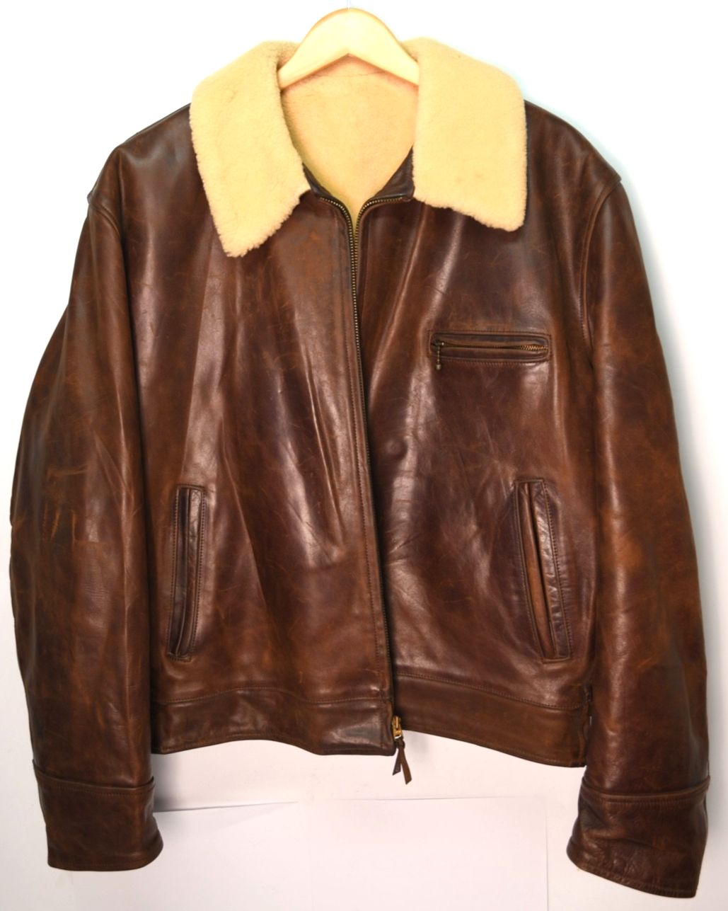 Aero Leather Horsehide Highwayman Brown Mens Jacket 48 Shearling Lining Moto Aviator