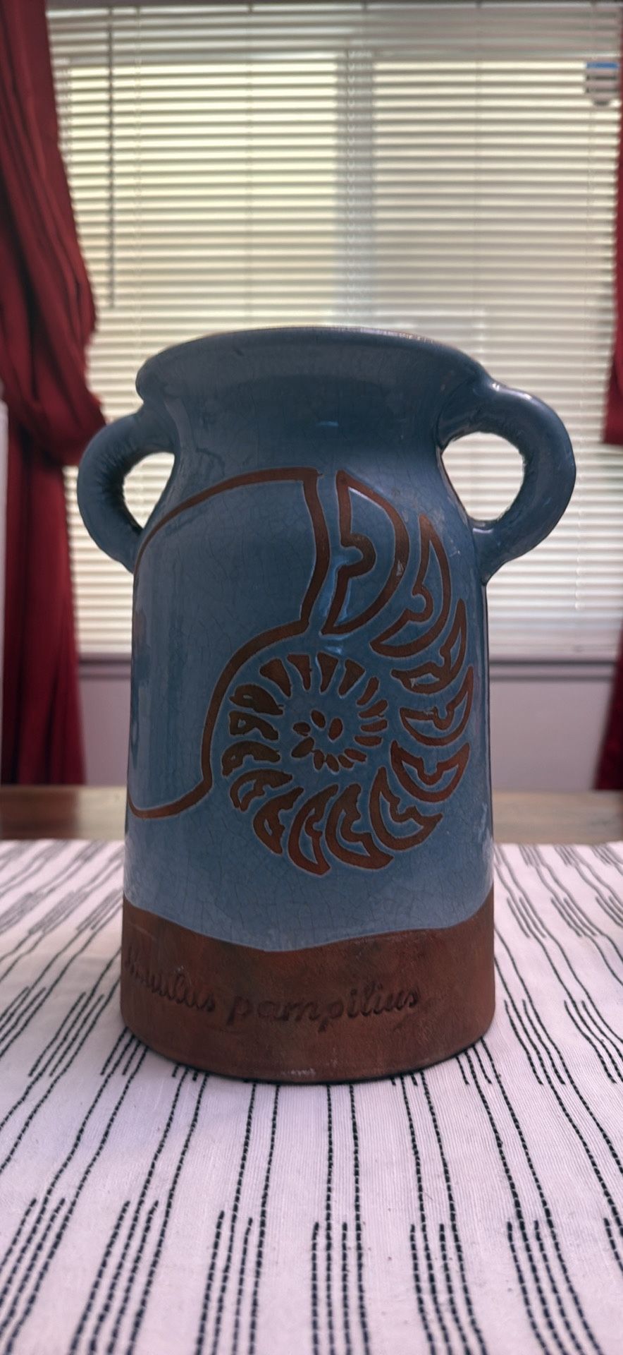 This beautiful tall urn vase is perfect for adding a touch of the beach to your home decor. The vase stands at 11 inches tall and has a lovely periwinkle blue color with a seashell design. The vase is made of clay and ceramic, and was crafted using pottery techniques. The Coast brand vase is perfect for those who love beach-themed decor and appreciate the artistry of pottery. It would make a great addition to any room in your home and is sure to be a conversation starter.