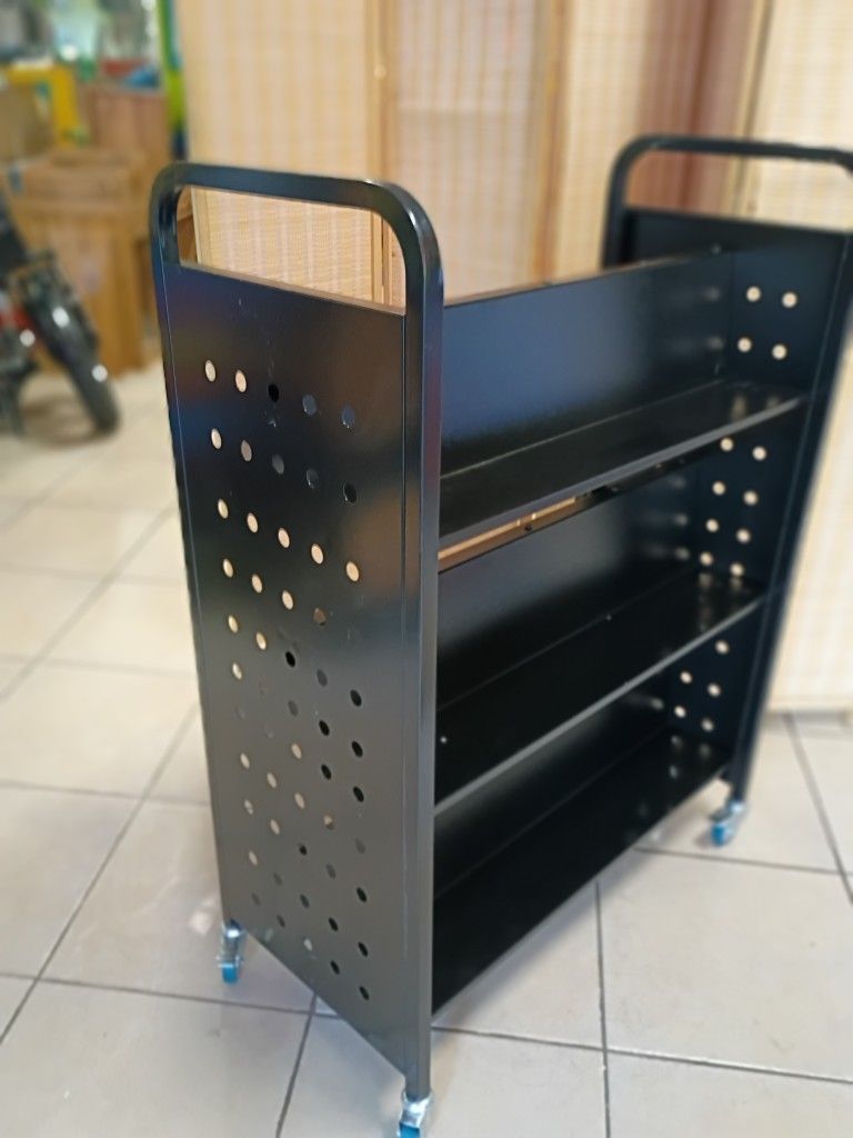 Rolling Library Book Cart, 330 lbs Capacity, 35.5x 17.5 x 48.2-Inch Library Cart, Double Sided W-Shaped Shelves with 3-Inch Lockable Wheels, Book Truck for Home Shelves Office and School, Black