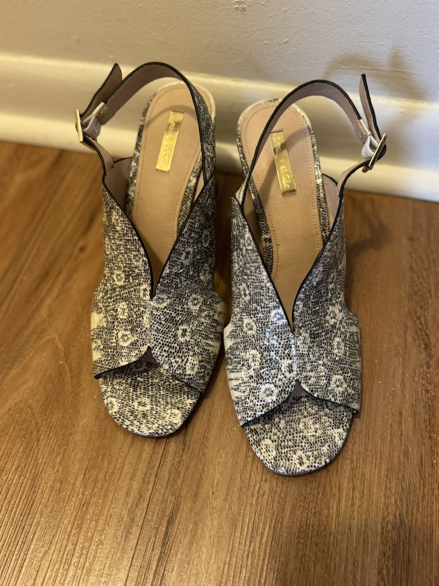 Size 9 1/2 with 3 inch square heels, Leather upper lining.