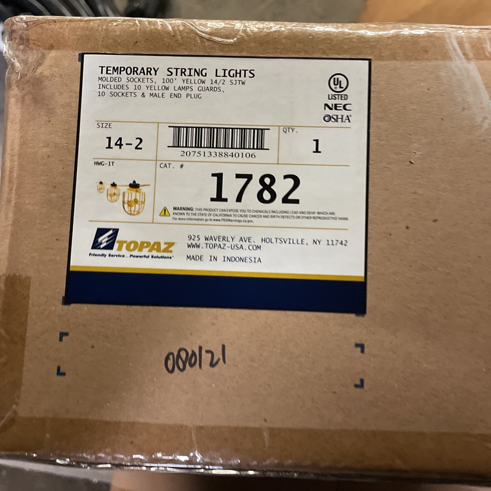 3 boxes. 10 socket and 10 lamp guards(yellow). 100’.