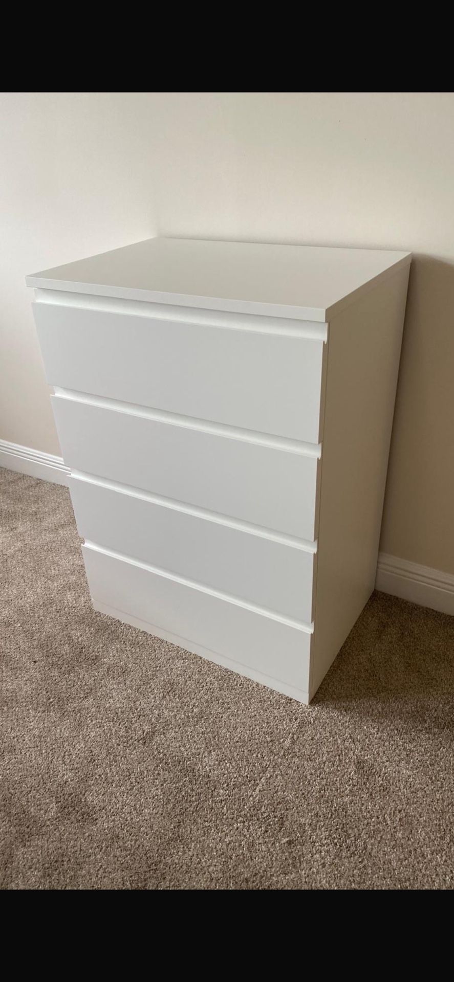 IKEAFour Drawer Dresser, white, in excellent condition, only selling as moving overseas.