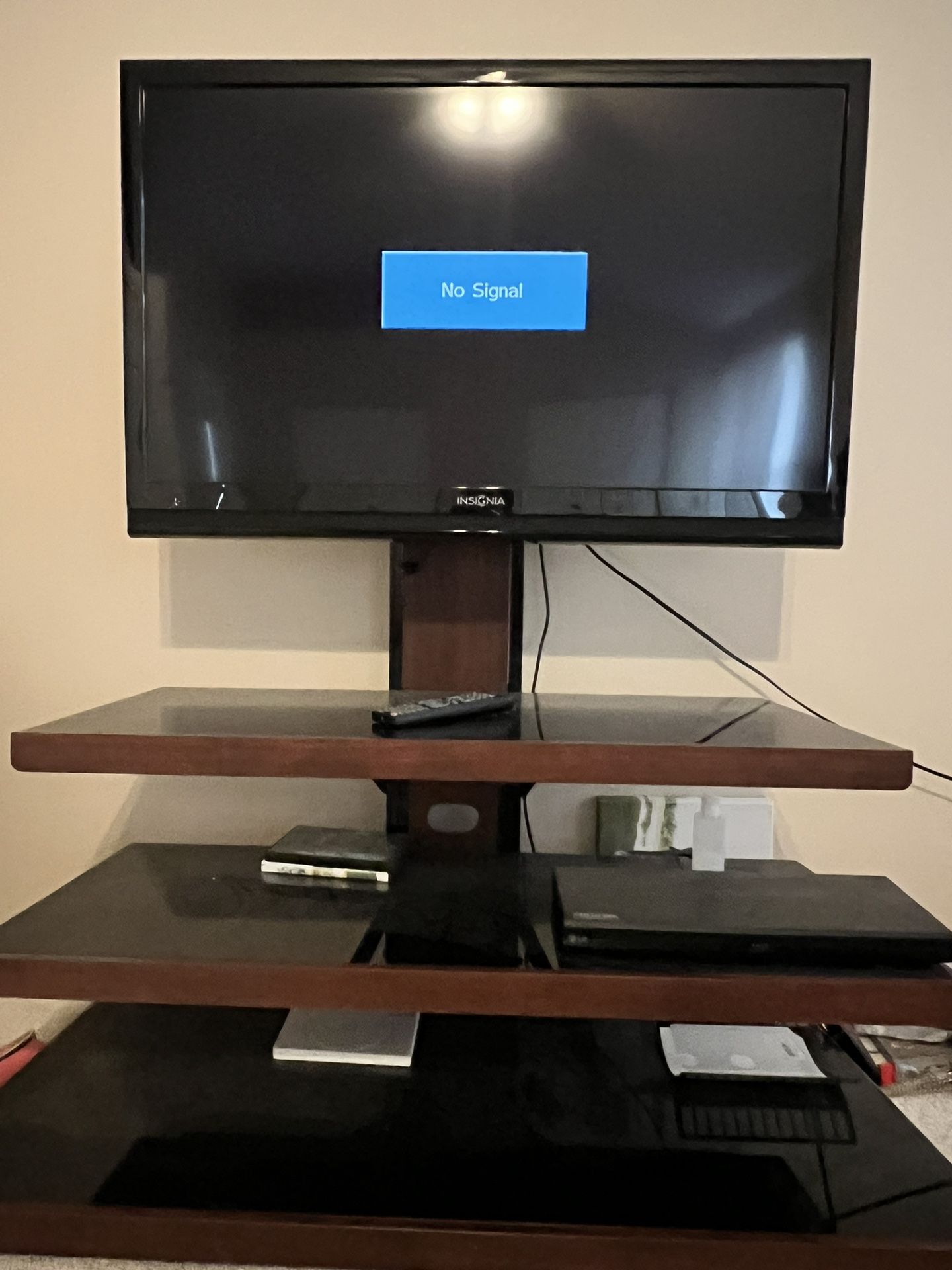 40 inch tv no issues works as it should. 3 tier tv mount espresso with black glass. Tv mount can swivel. No issues both for 300$