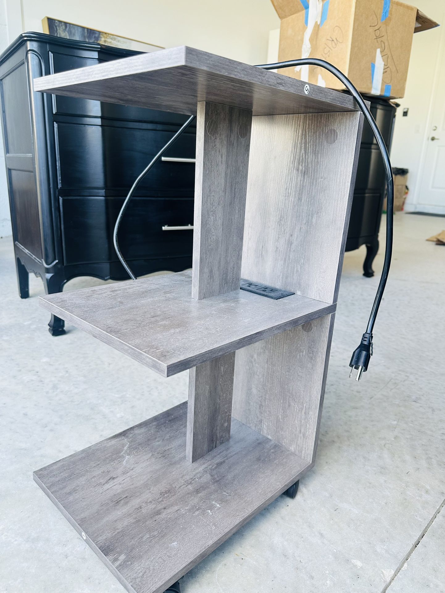 Narrow Side Tables for Small Spaces with USB Ports and Outlets Rolling Bedside Nightstand Sofa Couch Slim Shelf Night Stand for Living Room, Bedroom, Grey
