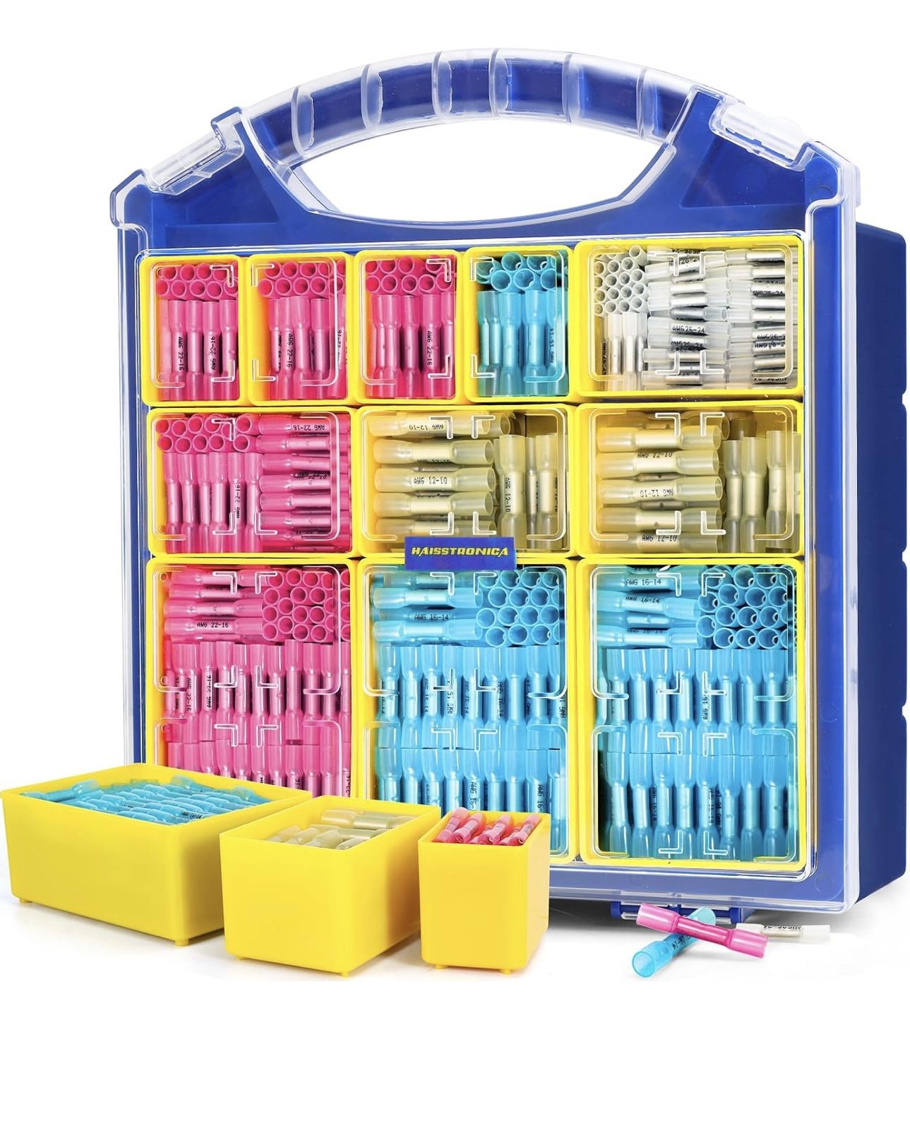 haisstronica 620PCS Heat Shrink Butt Connectors Kit,Marine Grade Heat Shrink Wire Connectors,Tinned Red Copper Waterproof Wire Connectors AWG 26-10