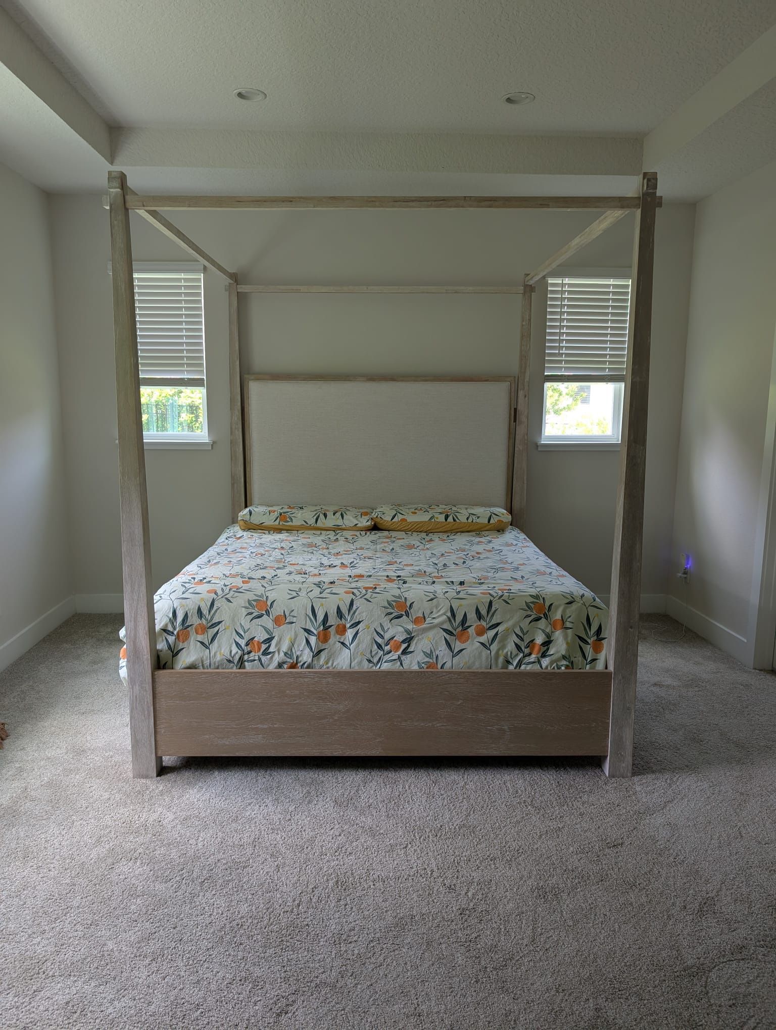 Upgrade your bedroom with this elegant and luxurious king-size canopy bed set, designed for both comfort and style. This complete bundle includes a high-quality adjustable base and cooling gel memory foam mattress—ideal for hot Florida nights. What’s Included: • King-size canopy bed frame with rustic, weathered wood finish • Neutral upholstered headboard • Adjustable base with head and foot lift functions • Zero Gravity mode for pressure relief and ergonomic comfort • Wireless remote control included for easy adjustments • Premium king mattress with cooling gel top layer – perfect for staying cool in Florida weather • Mattress has always been used with a mattress protector to maintain cleanliness and structural integrity Please Note: Duvet cover and pillows shown in the photos are not included This is a beautifully maintained, high-end bedroom set ready to bring style and function to your space.