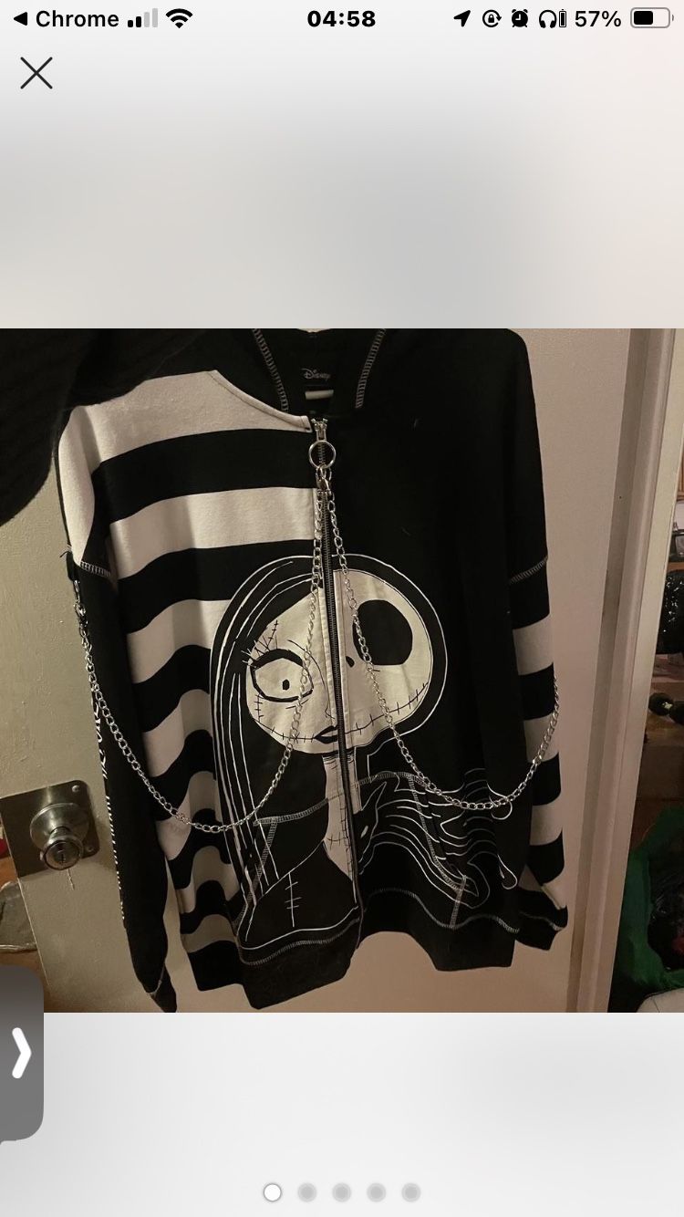 The most popular example of the great metaphysical union of opposites during the y2k era!!! Nightmare Before Christmas's very own Jack Skellington and Sally..potato-or something. (It'll come to me.) Size small, oversized, so can fit a medium. Unisex Price: $50 Worn to try on and that's it! Message me for bundle deals! Free shipping with any purchase $150+ Free gift with sales price of $175+ $200+ will get you BOTH a free gift, AND free shipping!!! Same day or next day shipping! I will not accept/accept offers at my own discretion. Your purchases help support 10 rescue animals at any given time. I foster as a medical emergency foster, rehabilitate, train, board, and domesticate feral animals. π Thank you for shopping!