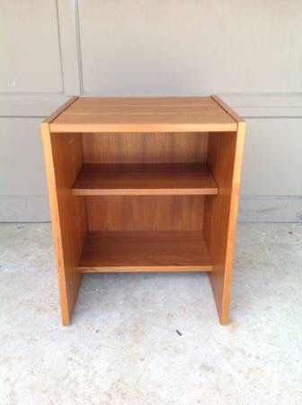 semi light wood vinyl over composite wood storage cabinet, has one position adjustable shelf, unit is 21.5" x 20" x 26.5" and shelf is 19.5" x 11.5", some wear and tear, I have a trailer and willing to deliver for additional $15 up to 20 miles out