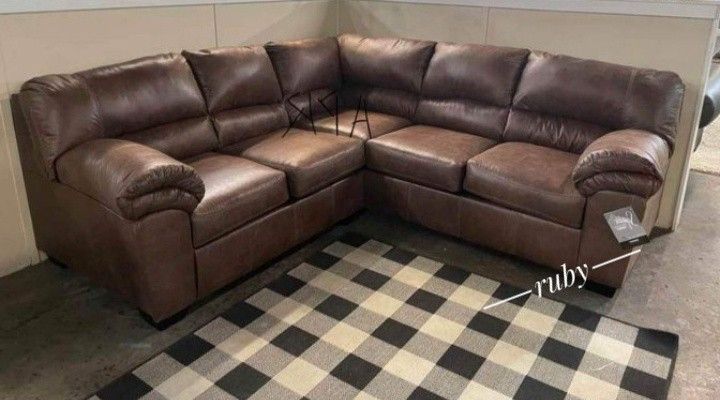 L Shaped Modern Microfiber Dark Brown /Coffee 2 Piece Bladen Sectional Sofa| 39$ Down Payment @ Fast Delivery 🚚