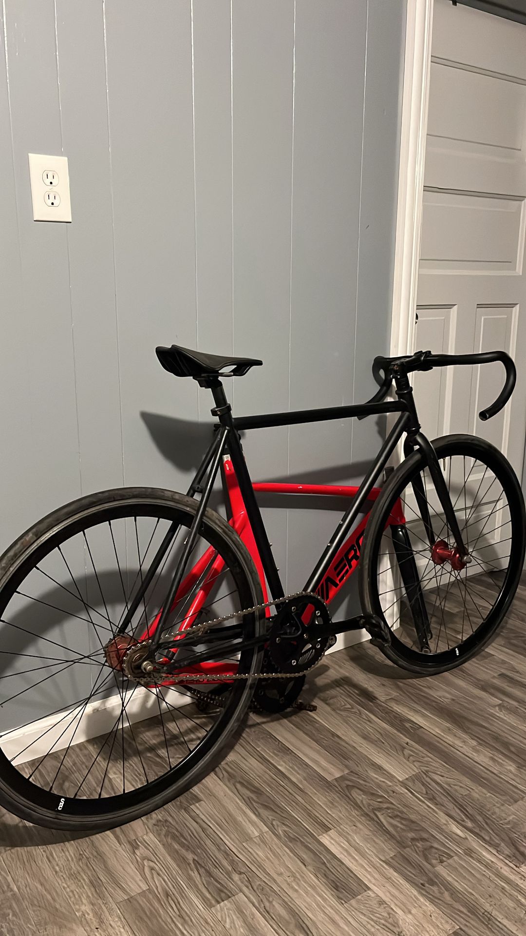 Just put a new chain on it. The back cog is a 15T and the hubs run smooth The size is a 55m and comes with a silver zipp stem or can change it to the black one in the pictures Lmk throw offer in trynna get rid of it LMK