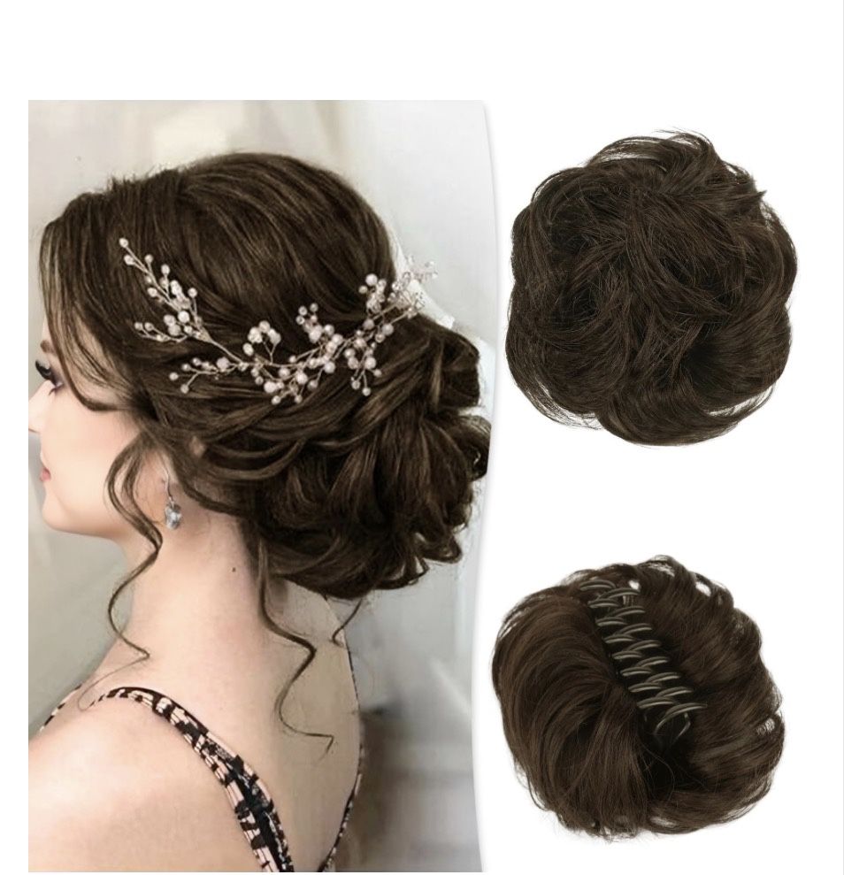 Claw Clip Messy Bun Hair Buns Wavy Curly (Dark Brown) Halloween Wig