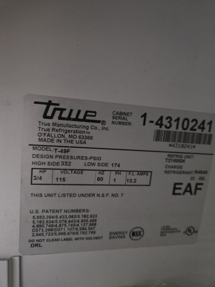 Selling True T‑49F commercial upright freezer AS‑IS. Compressor not working Condenser fan not working Sold for parts or repair project only Exterior and shelving are in good condition Local pick‑up only