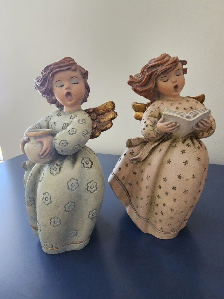 Selling (2) Vintage Italian made Collectible Angels Gorgeously Handcrafted & Handpainted. One holds a Music Book and the other holds a Pottery). Both are Signed & Dated by their Italian Designers: Ennio Morcaldo and Alfonso Lucchesi. Size: 6" Height x 4" Width. Gilded Gold tone Wings & Accents. Like New Condition. Sold together Only! "Cash & Carry". I meet at the Morrow Arts Center (45152 zip) with a prior appointment only.