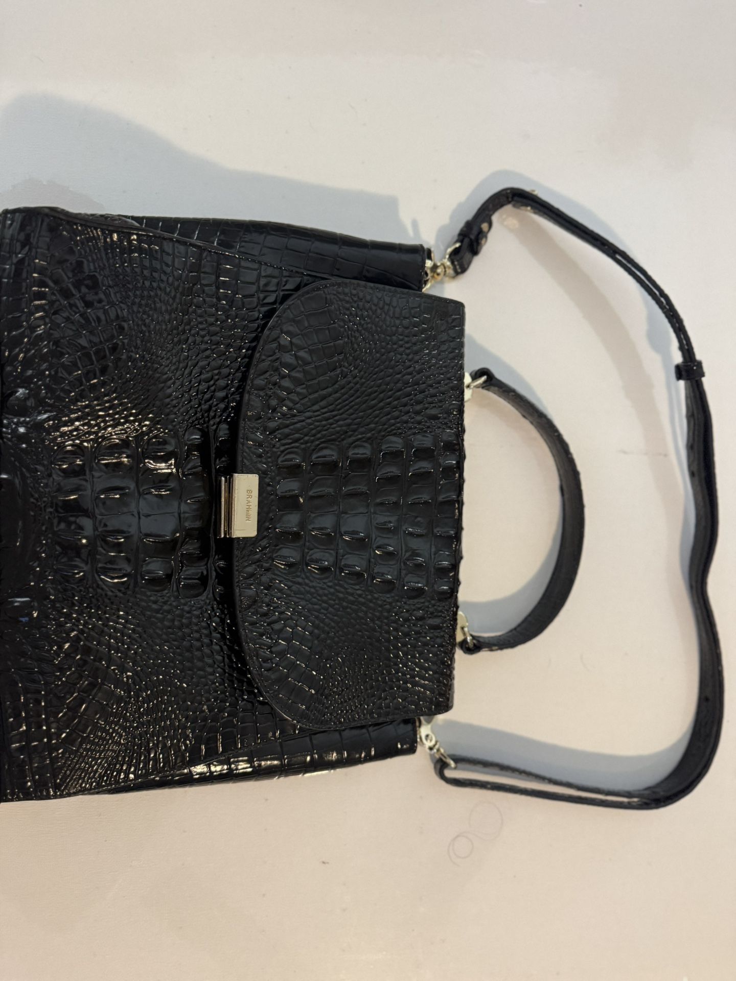 I have a beautiful black purse by NWT Brahmin Ingrid leather satchel/handbag in excellent condition. Almost new measurements are 11 inches tall 12 inches wide no neck, no rips no tears.