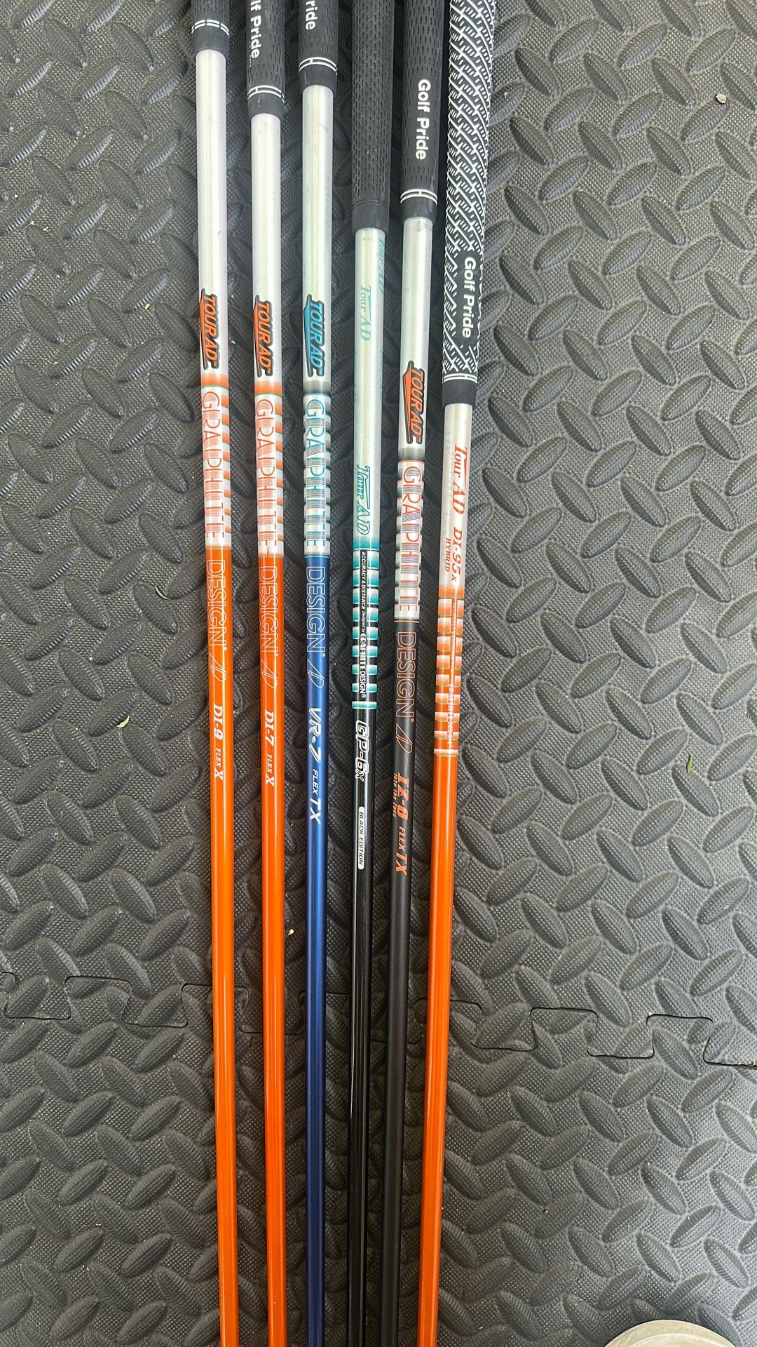 Di 9x 3 wood length no tip Di 7x driver length Callaway tip (SOLD) VR 7TX driver length Taylormade tip GP 6X driver length Callaway tip IZ 6TX Driver length Callaway tip Di 9x Hybrid no tip