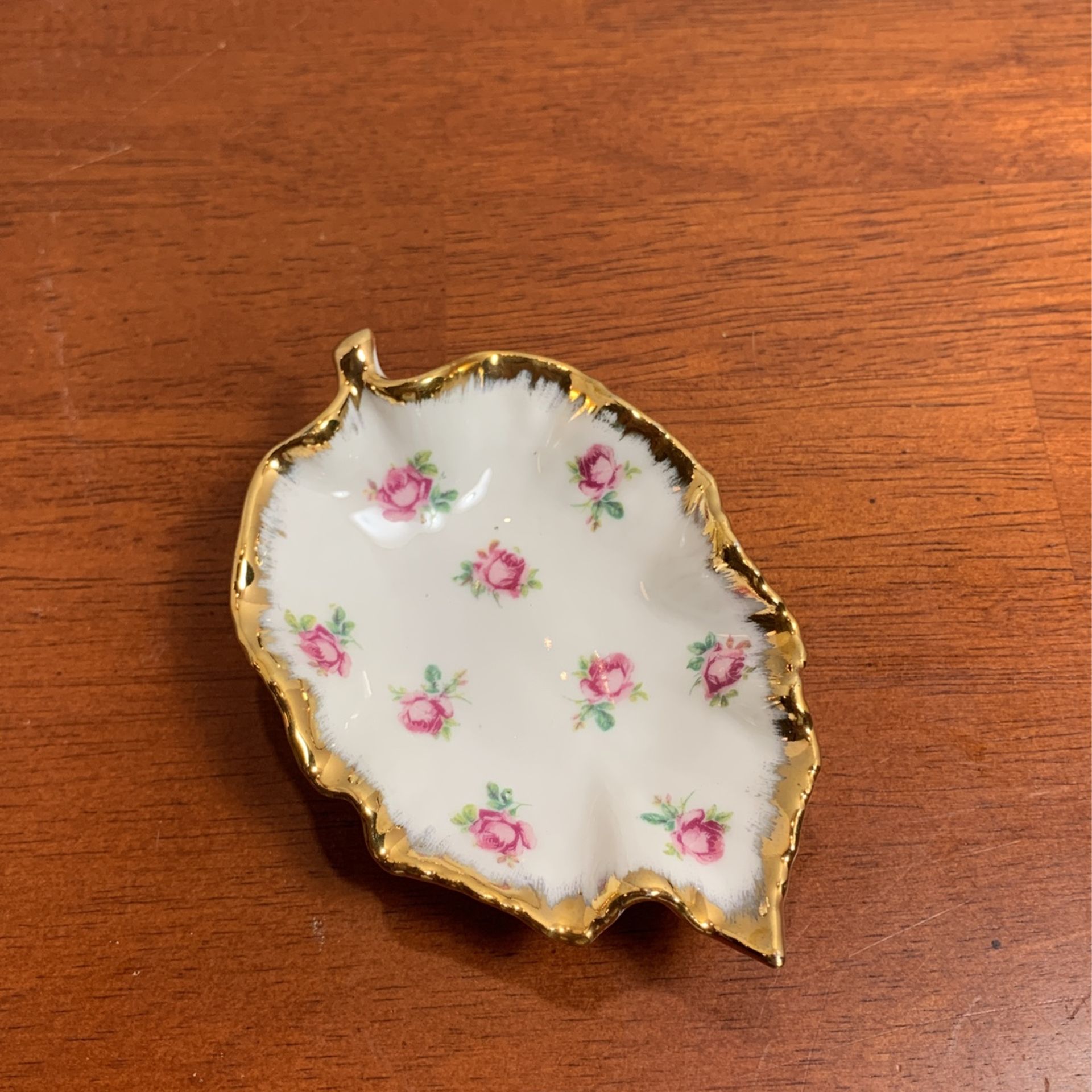 Vintage Limoges, France Handpainted Trinket Dish 4 1/2” X 3” With Gold Trim L8