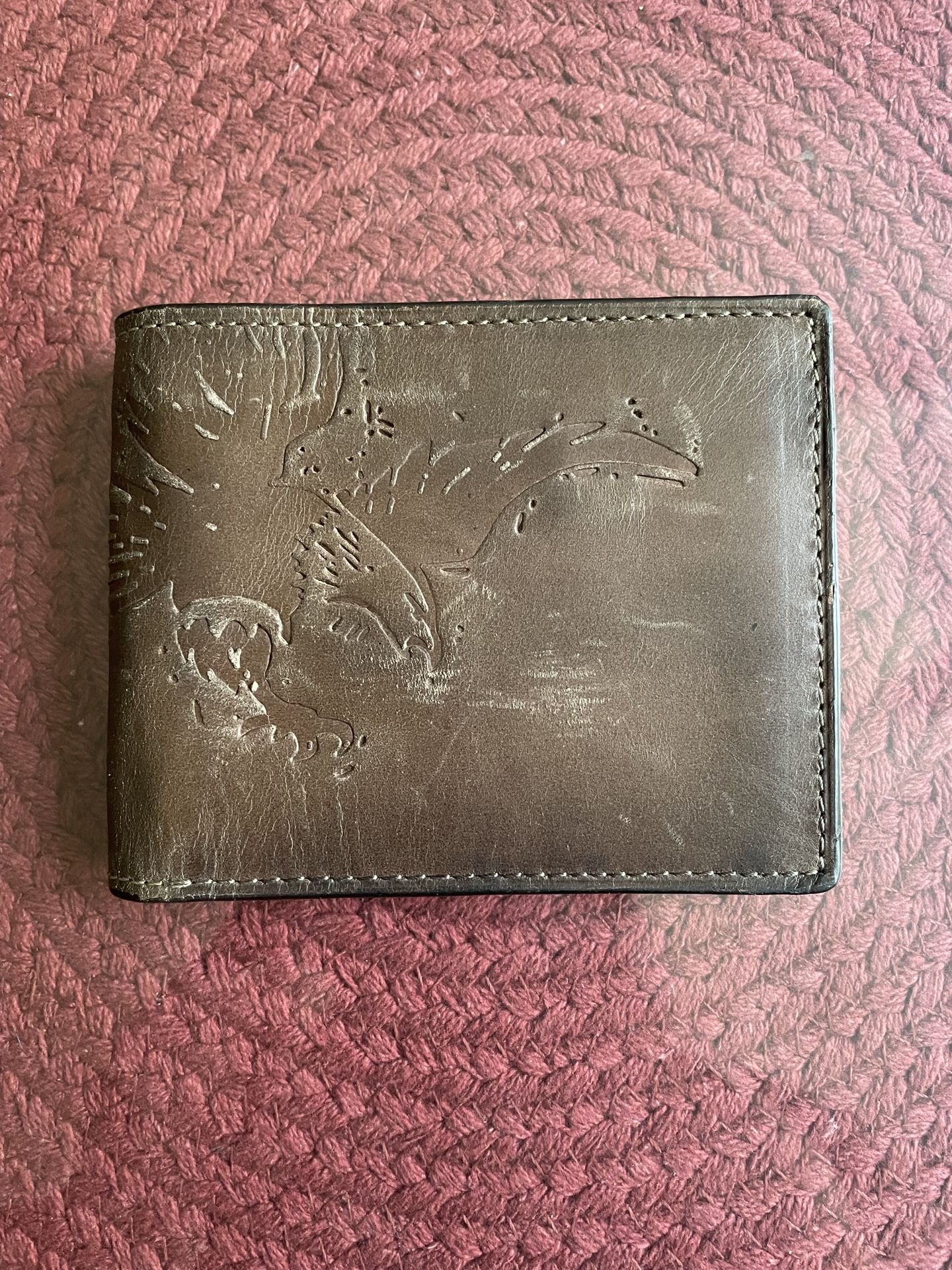 Fossil wallet with 8 interior credit card slots, 2 ID windows, 2 slip pockets, 1 bill compartment