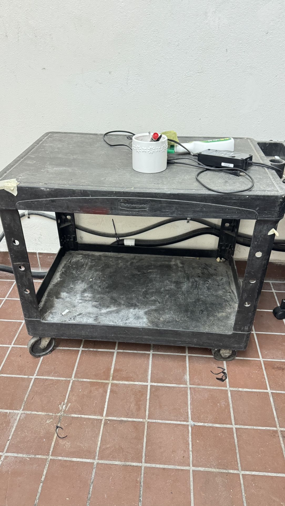 Carrito de trabajo Rubbermaid con ruedas - $25 Carrito resistente de la marca Rubbermaid, ideal para talleres, almacenes o trabajo pesado. Tiene dos niveles amplios, estructura sólida y ruedas que giran bien. Solo necesita una buena limpiada. ¡Funciona perfecto! Entrega en persona. Precio firme: $25 ¡Primero que llegue, se lo lleva!