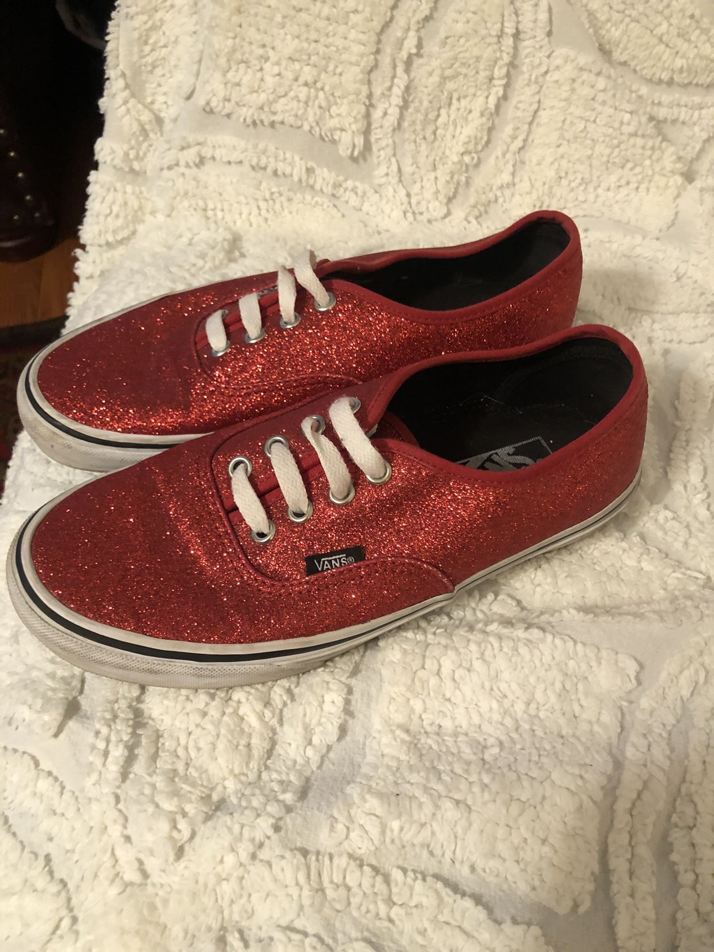 Very nice red glitter vans size 7 1/2. Very good condition. Wore once or twice