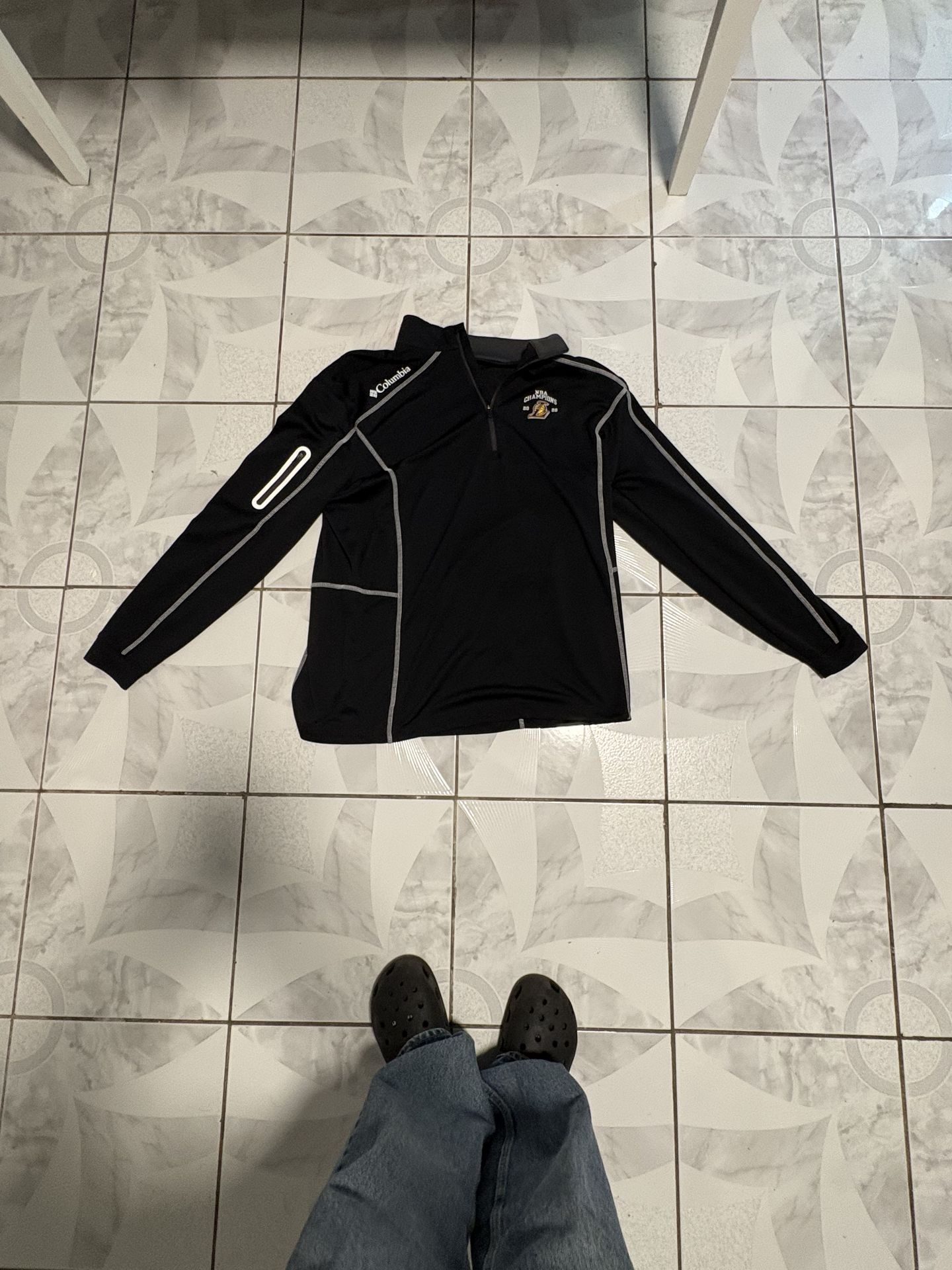 Columbia Golf Shotgun 1/4 Zip Pullover, Men's Size XL — Black with high-contrast grey stitching. Ideal for performance on the green or casual everyday layering. Featured details include a zippered bicep pocket, embroidered logo on the chest, and moisture-wicking fabric. Excellent pre-owned condition with no visible holes, tears, or stains. A reliable activewear essential for any wardrobe.