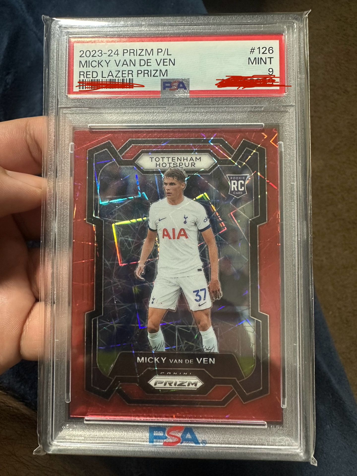 Micky Van De Ven Tottenham Red Lazer Prizm 2023-24 Prizm Premier League Psa 9 23/49