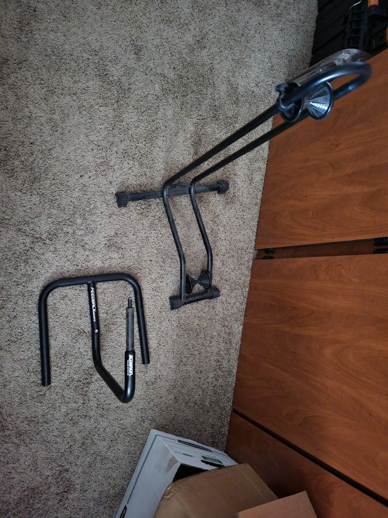 Large one-very stable rack, used for my mtn bike, tires 27.5 x 3.0 tires. It is adjustable. $40 Small rack SOLD-scorpion rack from Feedback Sports $30