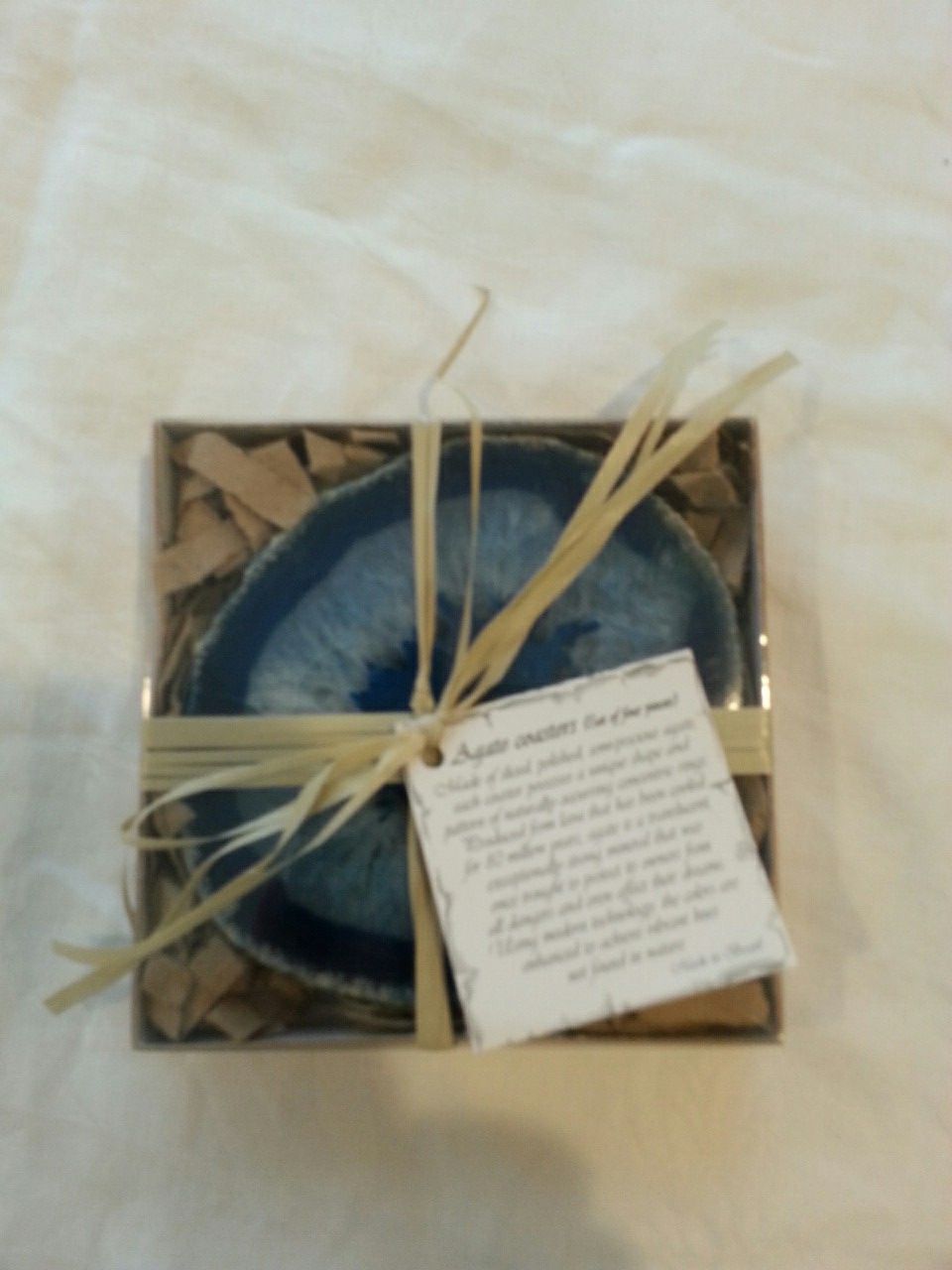 Blue agate coasters ..set of 4 ...NEW in box....unique
