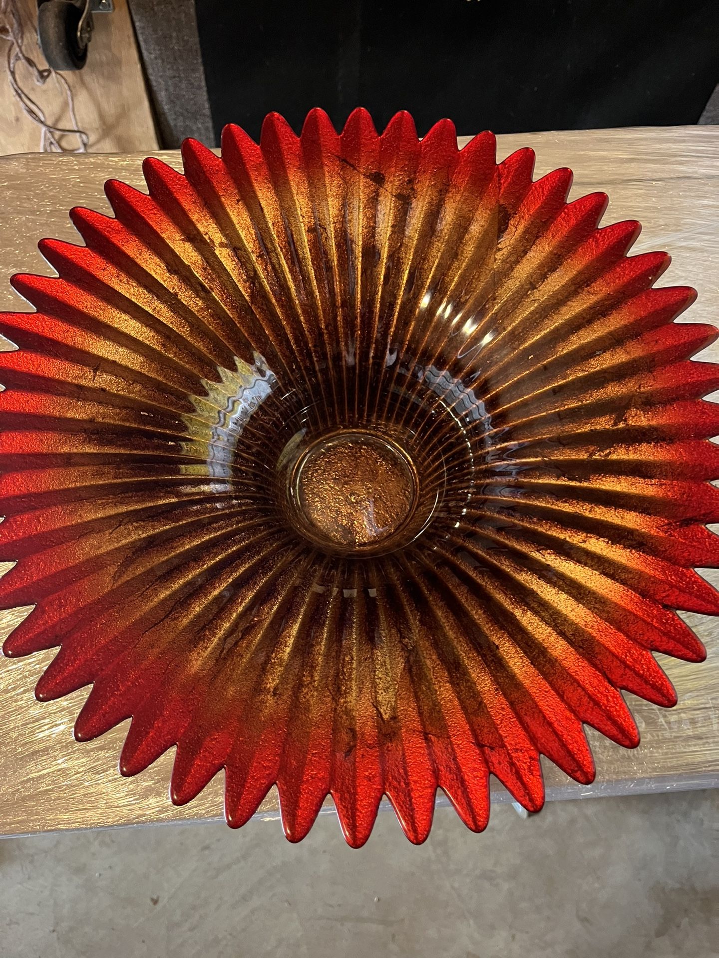 Stunning Red & Gold Art Glass Sunflower Centerpiece Bowl