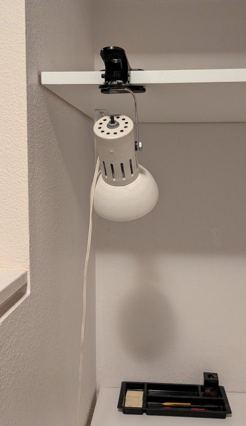 Clip-on lamp. $5 White standing lamp. $10 Black desk chair, 360 swivel, adjustable height. $10 Pickup Belltown+SLU