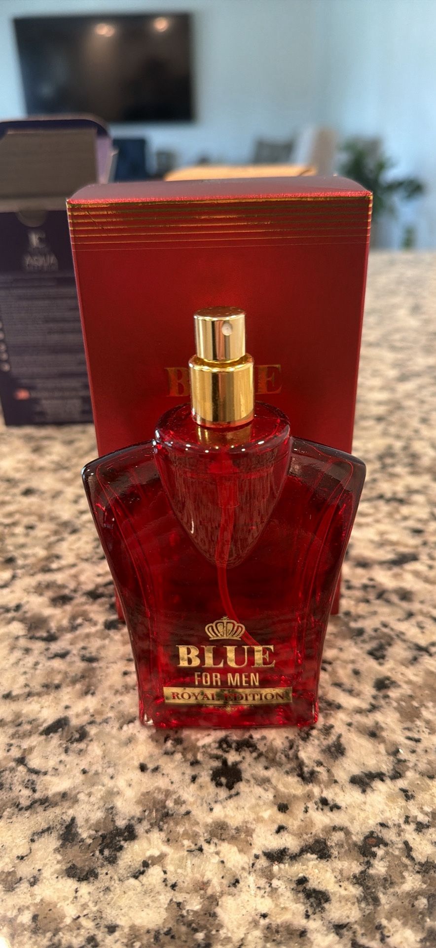 Blue for Men Royal edition cologne fo men. Second picture has a description of the scent so you have an idea of what it smells like. Popular Dubai fragrance Perfume para hombre. La segunda foto tiene una descripción del aroma para que tengas una idea de cómo huele si no la conoces. Fragancia popular de Dubái.