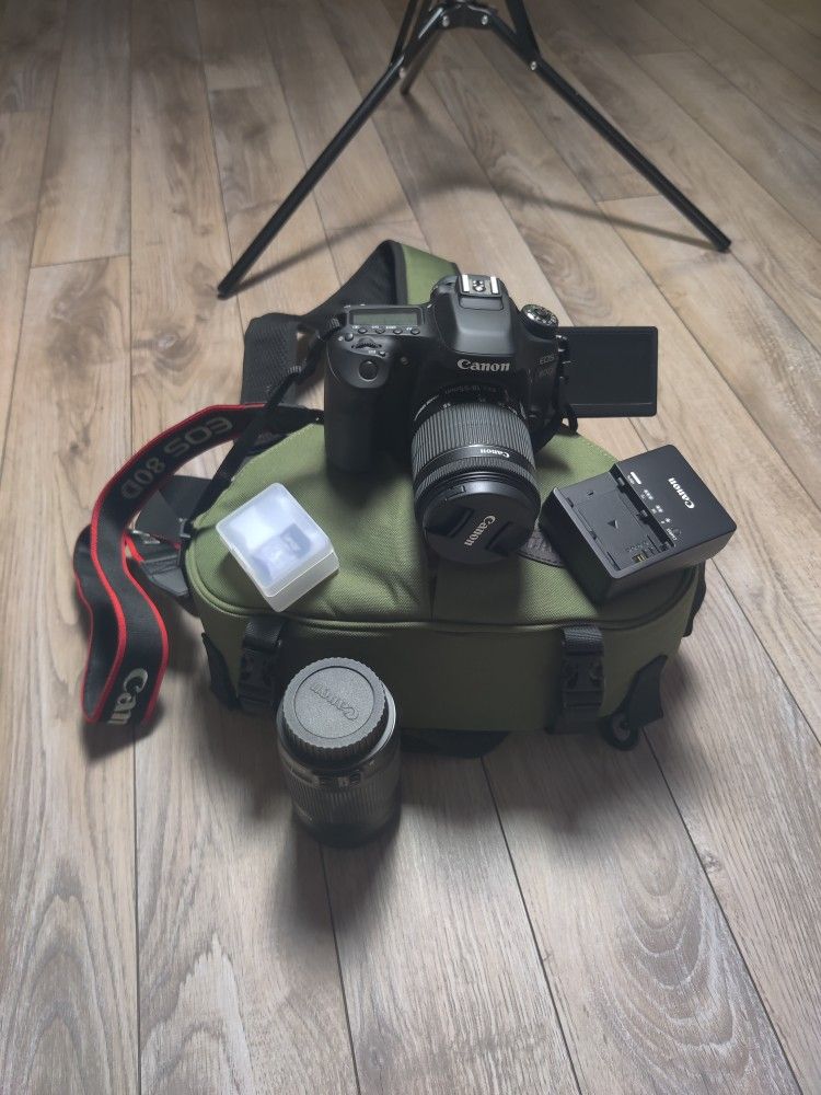 Canon 80D DSLR Camera /w 2 Lenses, Case, SD, Sling, Charger, Battery Barely used, excellent condition Keywords nikon Sony slr cam