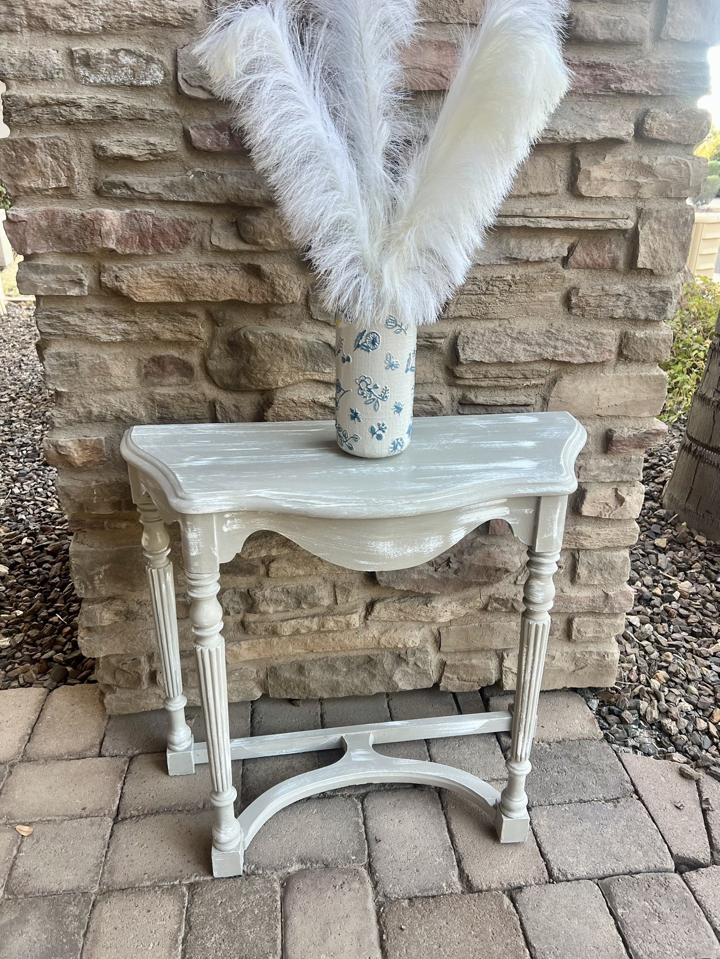 White and beige end table Pick up in store at: The Tattered Nest-11649 N Cave Creek Rd 85020 Booth #32 28in x 13in x 26in