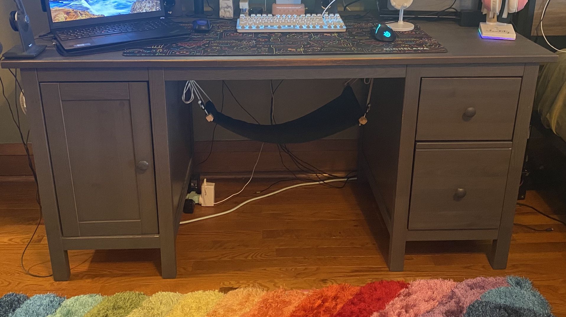 Old desk which is a bit worn out and the color I have is no longer sold but it’s the same model. The desk is sturdy and I need someone to pick it up quickly.