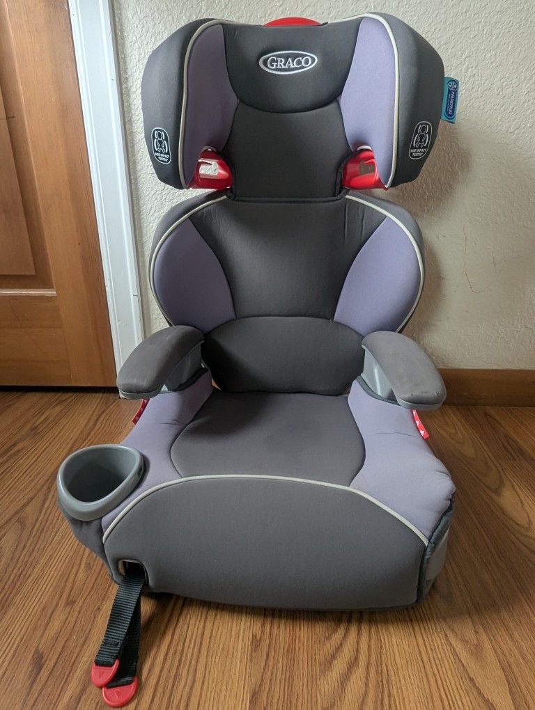 Graco booster seat. The back does detach into just the seat. No accidents, smoke free, pet free home. Includes owners manual, and manufacturer date shown in picture. And the fabric on one arm rest is a little worn, but does not affect the functionality. Please pickup only, no deliveries. Cash only please.