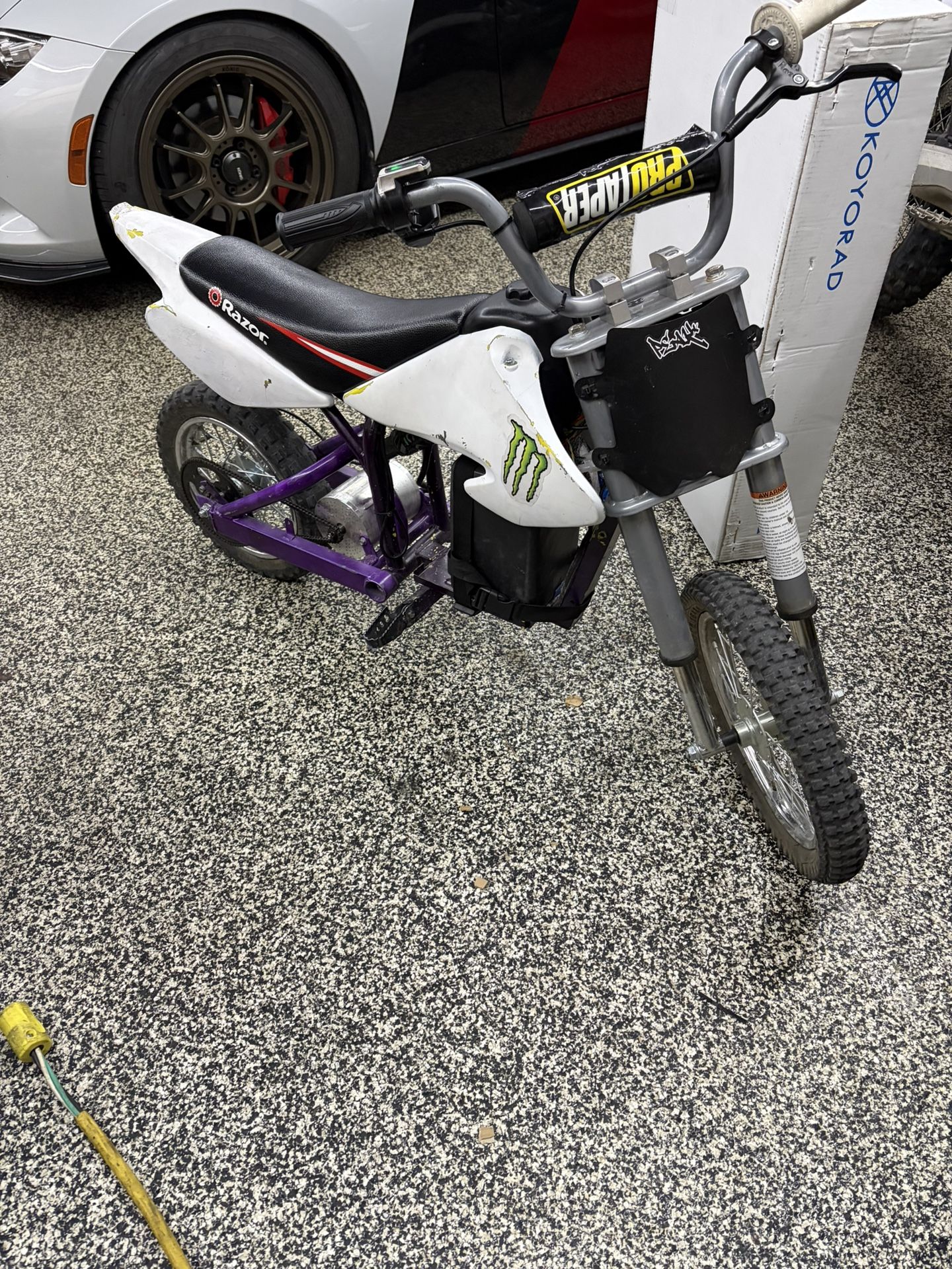 Will trade for ebmx v3 and can add cash or a bac or like a ap or Cartier lmk 48v 20ah btr battery and 48v motor bike works good good torque and goes like 30 with 15-30 miles of range only thing is the plastics could use a paint job 650 or best offer