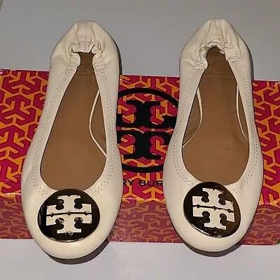 Tory Burch Designer Cream Reva Flats Leather Sz 6.5