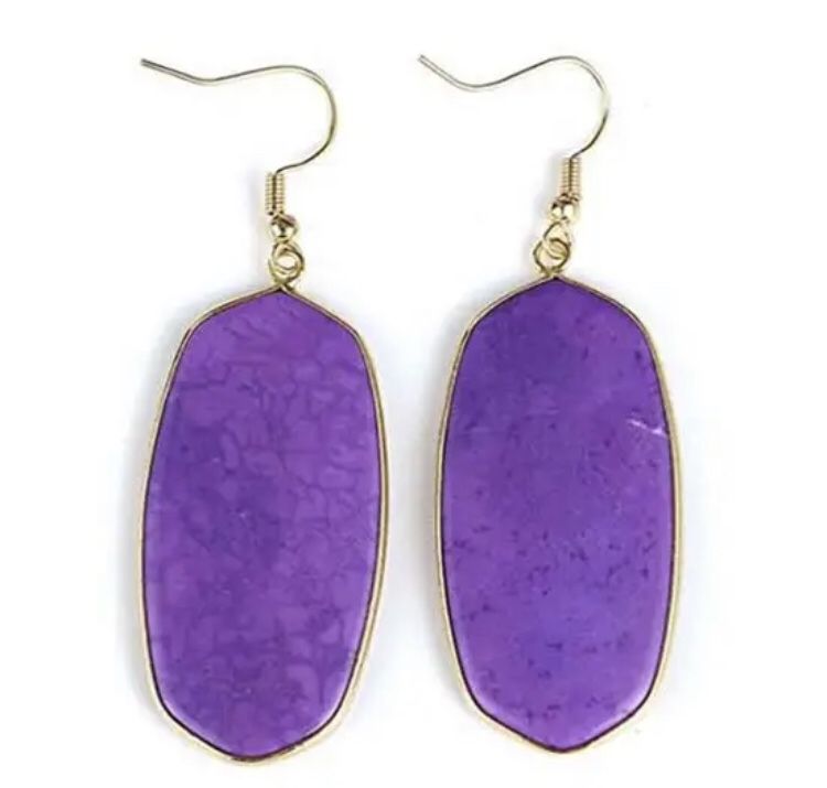 large 14k gold plated lavender purple stone oval hexagon dangle statement earrings