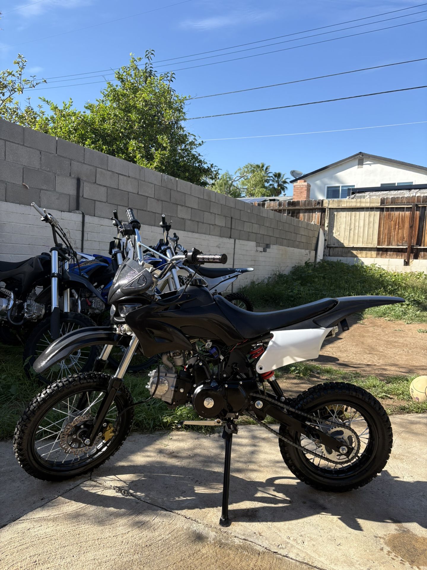 2020 125cc D7-12E dirt bike/pit bike 4 stroke regular gas Clutch 4 gears great to learn clutch Electric start and kick start Has headlights with turnings signals Has a horn as well Bike is literally new, still has hairs on the tires Needs a new battery but starts with kickstart